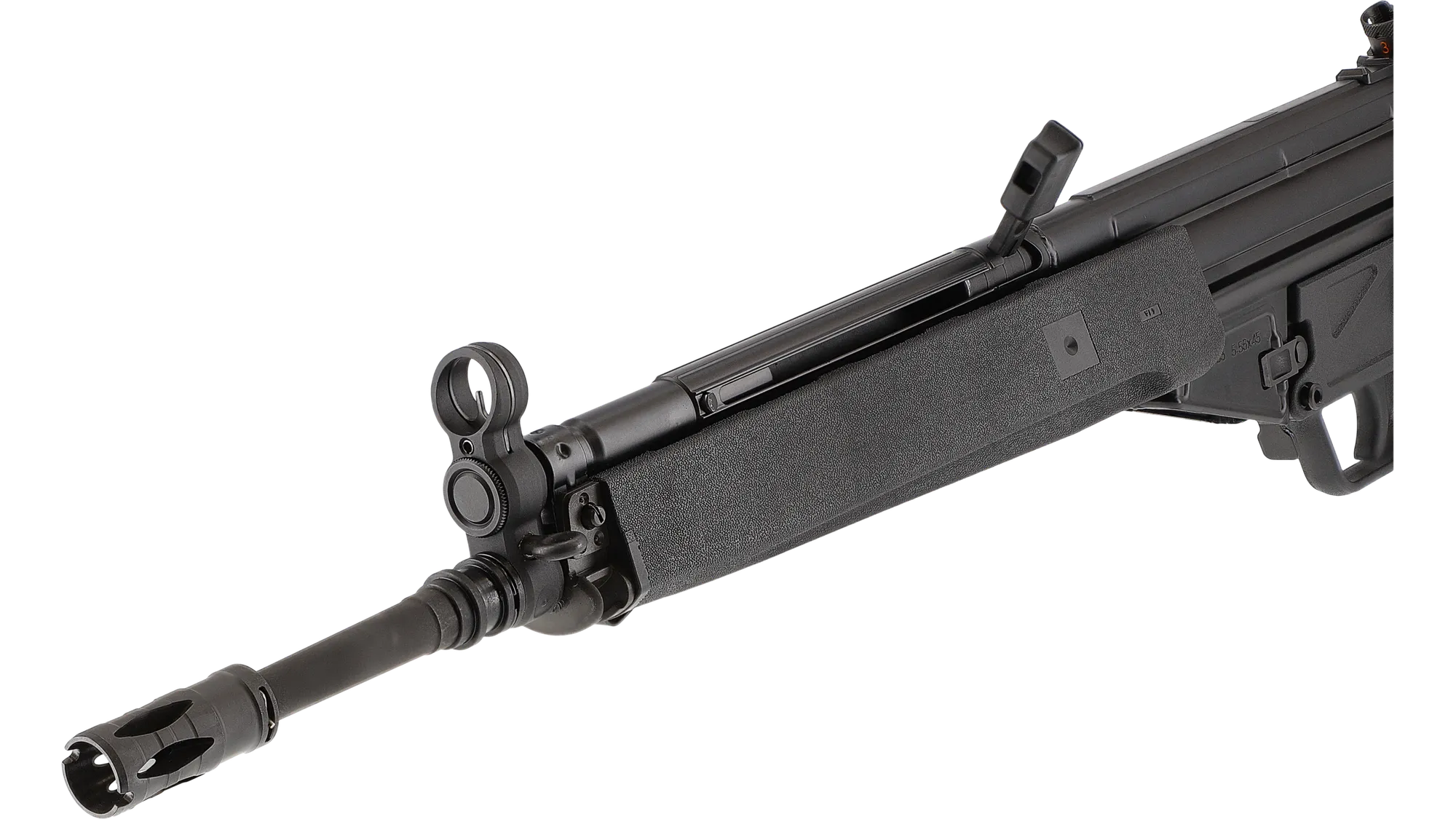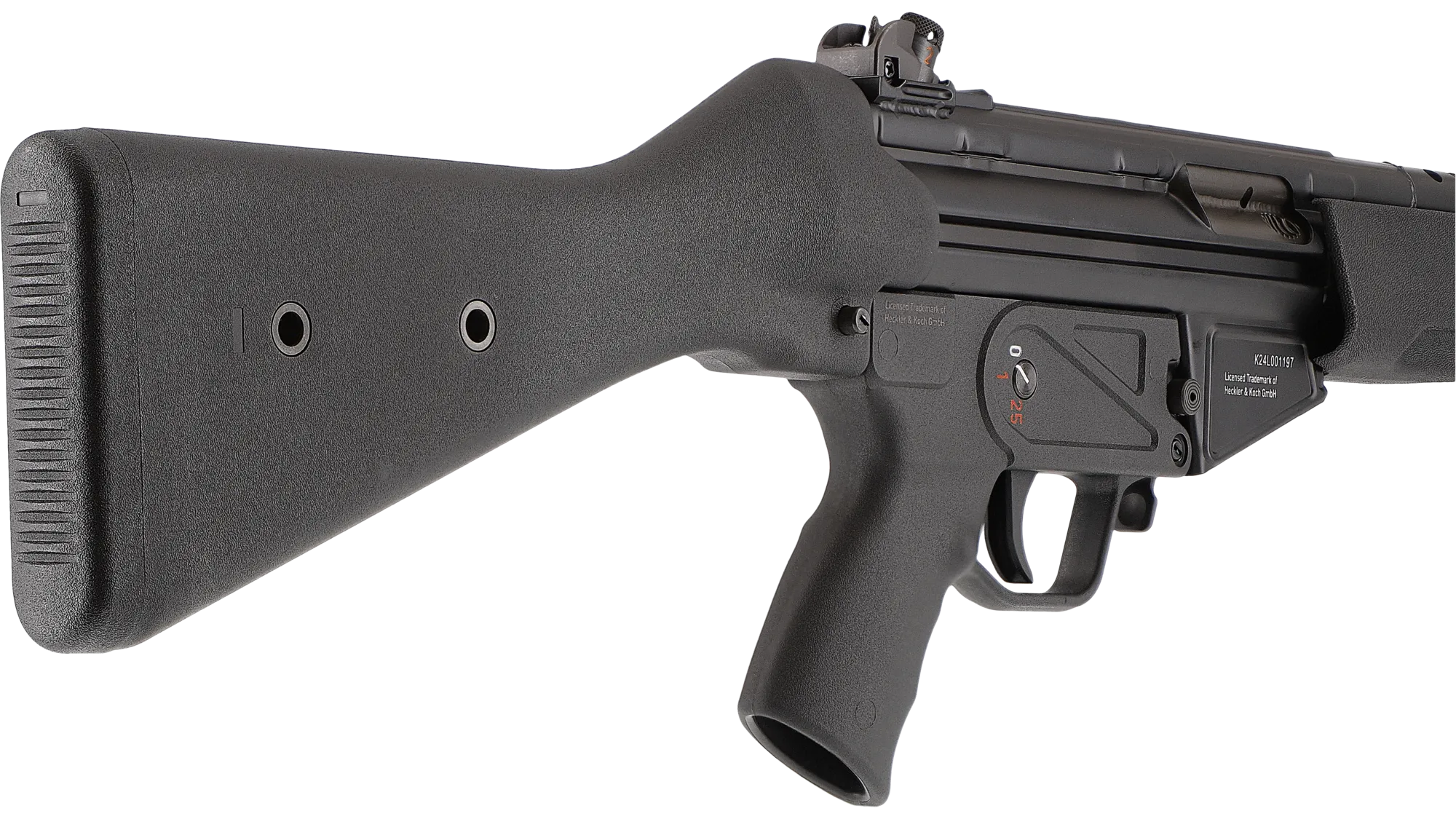 Elle dispose d’un blowback marqué, d’un shoot-up réglable et d’un NPAS d’origine. Le canon fileté en M14x1 à gauche autorise le montage d’accessoires compatibles. Le tir en full auto est possible.